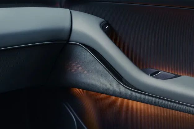 高合汽車HiPhi Z在內(nèi)飾上使用了與科思創(chuàng)共同開發(fā)的可回收大理石紋碳纖維材料,與鋁材相比能降低30%的重量。